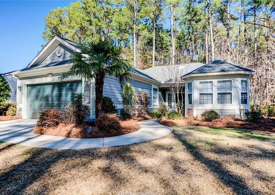 SUN CITY, Custom Clear Creek model, 2BR/2BA +office/craft Room & Carolina Rm,Covered porch & Large decor paver patio w/seating, Wooded lot on Cul-de-sac, Great Room w/Custom TV/bookshelves, Skylite,Tiled Carolina Rm w/wooded View, Updated 18in tiled Kitchen & halls, Kitchen windows + can storage pantry, Dining w/Bay & French/doors to C/room, Mstr Bedr w/slider to porch & walkin closet, Mstr Bath raised vanity & Lg Marble shower, Guest Bdr w/Bay & Full Bath, Fans, Blinds,Smooth Ceilings,Newer 16 Seer HVAC, 4ft Ext garage w/service door, Hardi siding, Lush landscape w/Palms,Central location to amenities, Beaufort Co. lower taxes