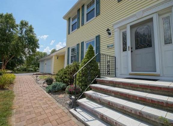 Welcome to the neighborhood! Enjoy the landscape in the front yard as you walk the brick paved walkway to the granite tile stairway to enter this home. Inside you'll find the tile entry extends into the over sized coat closet. This 4 BR home boasts large rooms throughout including formal dining, living and famly rooms. Off the kitchen, a well insulated 3 season room allows entry to the 2 car attached garage to the side and french doors to the covered porch that overlooks the large flat backyard and summer sunsets. The yard is adorned with blueberry and raspberry bushes, peach and apple trees and even a grape vine, not to mention the Japanese Maple and more! Efficiency throughout the house includes a floating wet bar (kitchen area), double sink in master bath, and huge finished basement. This home has been meticulously maintained with numerous upgrades and updates including Central AC and a point well ready for irrigation and triple pain high efficiency windows!