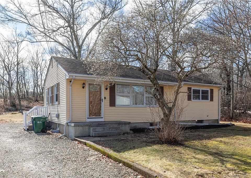 This adorable, well maintained ranch is peacefully located on 1.4 acres on a dead end street. This home features 2 bedrooms plus an office/den/or 3rd bedroom with a slider leading to a large patio area. Bright kitchen, cute bathroom with wainscoting, and hardwood floors throughout the main floor. The partially finished basement is a great room for entertaining with its custom bar area. Outside generator hook up. Conveniently located near Oswegatchie School, Niantic River, and just a short drive to highway.