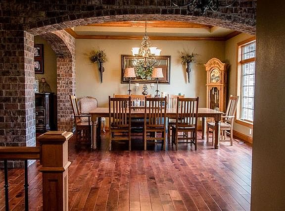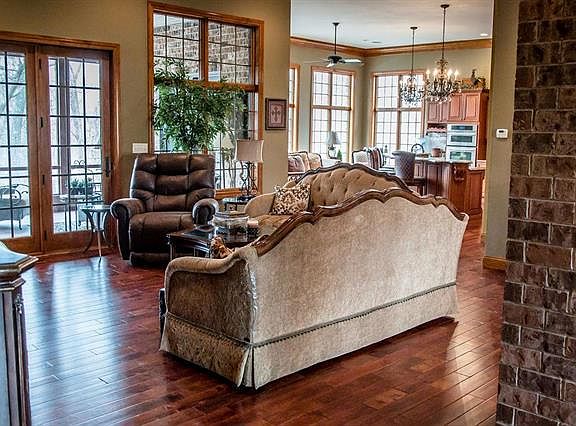 Exquisite custom-built home that is perfect for daily living. This stunning open floor plan features 4 beds, 4.5 baths, 5 car garage. Open the door to the soaring 12 foot ceilings and walls of high efficiency windows. Beautiful brick archways surround the formal dining area which flows into the living space and high end gourmet kitchen which is perfect for entertaining. Special features include custom cabinets, granite countertops, large center island, and built in Jenn Air appliances. Luxurious Master Suite offers a raised ceiling, large walk in closet, and beautiful bay window. Pamper yourself with the spa inspired walk-in shower, whirlpool tub and an elegant vanity to help start your day. The grand design continues into the lower level recreation room, bar area, and a large exercise room. Backyard Paradise consists of a screened in patio, in ground heated saltwater pool, landscaped yard on a secluded tree lined 1.68 acres. The covered deck will make your morning coffee luxurious.