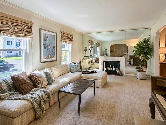 After 41 joyful years of living here, the sellers are leaving the "empty nest". Situated on a centrally-located, picturesque cul de sac of comparable homes, this 9 room colonial has large open rooms, welcoming living room with fireplace, gracious dining room, family room with fireplace off the updated kitchen with double ovens/Bosch/Jennaire appliances and first floor laundry. Upstairs the second floor landing opens to four bedrooms and bathroom with whirlpool tub/shower. The walk up attic is a well insulated storage area with a thermostatically controlled fan that keeps the house cool. The semi finished lower level has a double cedar closet and is used as a work space but has potential for updated playroom. Outside enjoyment awaits in the extra large fenced yard ideal for recreation/entertaining. Short distance to commuter rail, downtown or beach.