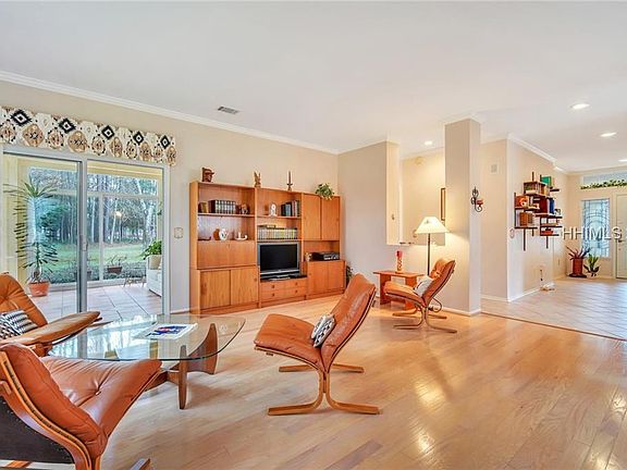 The attractive paved driveway leads to this well, cared for home which is an easy drive to town center and amenities, and the front gate. The cut glass door and window flood the entry w/plenty of light. The guest bedroom is in the front of home while the master is in the back for plenty of privacy. The hallway leads to the open, spacious kitchen with eating area overlooking the dining room w/bay window, the great room w/plenty of light and hardwood flooring. The sun room off the great room opens onto the patio and has a wonderful, private view of the woods. The master bedroom has a large spacious closet and private bath w/separate shower.