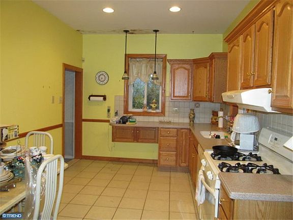 Price Reduced and Ready for New Owners ! Large Home in Old Orchard Neighborhood,9 Foot Ceilings on First Floor, Huge Renovated Eat in Kitchen with Ceramic Tile, Corian Countertops and Natural Gas Range, Front Sunporch. Formal Living and Dining Room. Newer Vinyl Windows. Home is serviced by both Natural Gas and Basement Oil Tank. On oversized .20 acre lot with extra long Driveway. Great Location close to Bridges into Philadelphia, Turnpike and I-295. Visit Today !
