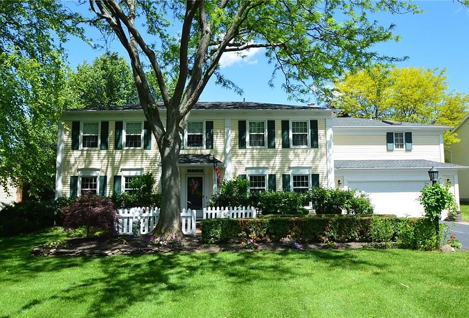 Pristine 4 Bedroom, 3 Full and Two Half Bath Colonial, Meticulously Maintained by Original Owner. Pittsford Schools, Perinton Taxes! Oversized Eat in Kitchen with Large Island and Sub Zero Refrigerator open to Family Room with Built in Cherry Cabinets and Gas Fireplace. Lovely Formal Dining Room and Living Room. Three Season Sunroom overlooking Deck and Private Tree Lined Yard. Front and Back Staircases leading Upstairs. Master Suite with Private Access to Nursery or Office and Two Walk-in Closets. Bedrooms Feature Hardwood Floors and Larger Closets. First Floor and Basement Laundry Hookups. Two Furnaces, Full Home Generator, Irrigation System, Invisible Fence, Newer Roof and Windows. New Driveway with Double Turn Around. Finished Basement. The list goes on, QUALITY ABOUNDS!