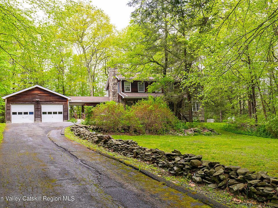 First time on the market, this well-built cedar-sided colonial awaits your personal touch. Sited on 3 acres on a quiet, dead end road, this 4BR/2.5BA residence offers over 2500 fin. s.f. Main level has foyer which leads to eat-in kitchen with access to private, rear deck as well as a breezeway to a 2-car garage. The breezeway has laundry facilities and a powder room. There is a formal dining and living room. Also, features a den/office with stone fireplace. Second level has primary bedroom with bath featuring spa tub, 3 additional bedrooms and hall bath. Lower level has high ceilings and features a new Buderus boiler. Roof is only 2 years old and there is a propane back-up generator. The acreage is level with mature hardwoods and there is a garden shed for landscaping supplies. Minutes to Rhinebeck Village and convenient to Amtrak, Bard and the Taconic.