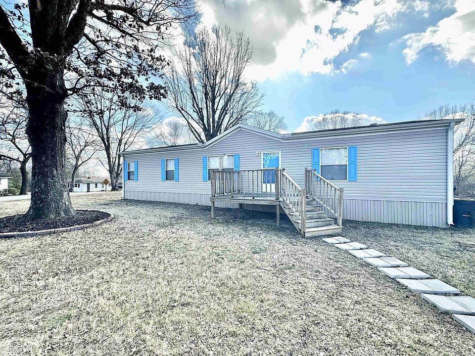 Cute and well-maintained 1-level, 3 bedroom 2 bath mfr home sitting on 1.06 acres outside the city limits of Trenton, in the Cades community, in between Trenton and Milan. Low taxes-$404.62/yr. Open and functional, split bedroom floor plan with a breakfast bar overlooking large eat-in kitchen. Electric smooth top range. Walk-in closets in all bedrooms and bedrooms are all good sizes. Double vanity, corner soaking tub, and separate shower in owner's bath. Fresh, neutral paint throughout. Extra laundry room nook perfect for an upright freezer. Relaxing decks on the front and rear of home. 12x16 storage building. Gibson Connect internet service. Recent survey on file.