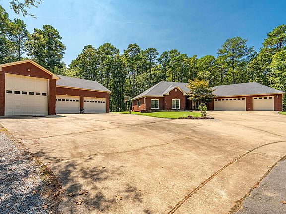 This one-of-a-kind property in located in the heart of security gated Hot Springs Village, AR. Minutes to the health club, golfing, boating, hiking trails, restaurants, etc. This unique property ALSO has the lot next to it that boasts an incredible 2,336 SqFt RV-Garage, with a 56' bay, 13'9' motor home door, room to store your boat, cars, a huge workshop, insulated complete with office & full bathroom. The outside is beautifully designed to match the home! This all brick home features designer worthy touches & upgrades. Hickory floors in the living areas, custom tile work, maple cabinetry in the kitchen & laundry. An office with dual-seating & custom built-ins, an extra room on the primary bedroom side of the home that has many possibilities: craft-quilting room, library, card room, create another large closet, exercise room..so many possibilities! The home is the only home on the cul-de-sac, so no neighbors on either side! The backyard has a covered patio deck, perfect for sitting outside at night, add a firepit for some great conversations & memories. The home has a 3-car garage with newer epoxy floors, a half-bath and direct entry into the home. AGENTS SEE REMARKS