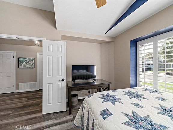 ENCHANTING BACKYARD PARADISE... Rare, single story, 4 bedroom, SFR with flexibility of floor plan allowing you numerous choices. Complete with sola tubes, ceiling fan, track lighting and sliding door access with hidden screen to the rear yard, the 4th bedroom could instead become your 200 sq ft office or a spacious and separate family room off of the living room further promoting the great room concept. Still maintained and occupied by the original owners, throughout the home you will find Milgard double-pane vinyl windows and vinyl sliding doors, plantation shutters, raised panel doors, upgraded door hardware, door casings, window casings, oversized baseboards, textured ceilings, Decor plugs/switches, recessed lighting, tile flooring in the bathrooms and laminate flooring elsewhere. Vaulted ceilings in the entry, living room, dining room and 3 of the bedrooms help create that sinsation of volume and space while providing a home to ceiling fans and sola tubes. The Primary Suite has it all with indirect lighting, mirrored closet doors, a separate walk-in closet, sliding door with hidden screen to rear yard, dual sinks, granite counter, a walk-in shower with extensive tile work and handy shower wand. The remodeled hall bath has wainscotting, a granite counter, a glass enclosed shower over tub, newer cabinets and tile work including 2 pockets. The efficient kitchen with its breakfast nook, sliding glass door with hidden screen leading to the side yard, double sink, recessed lighting, tile counters and stainless steel stove/oven/microwave combine to make meal preparation a delight. The concrete tile roof and fresh exterior paint should be mentioned as well. When asked what feature of the home was most prominent for the sellers, they smiled and replied, "The backyard!" Bathed in morning sunshine and cloaked by afternoon shade, this yard is the very essence of what landscaping can do to create privacy. Cropped back by a retaining wall with brick steps leading to a foot pathway, the slight bank is home to lush landscape and fruit bearing trees. Welcome to "Guacamole Ville", where you will be able to harvest your avocado crop from 3 produce bearing avocado trees. The care and attention to detail demonstrated in the nurturing of the flora in the backyard is obvious. Located near SM Lake, the Beach Club/Lagoon, public/private schools, shopping, dining, parks, fields and the Rec Center, this home is convenient no matter who you are or what your interests might be.