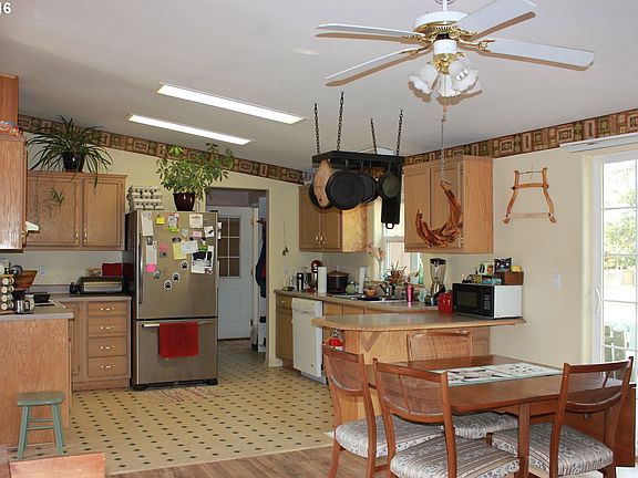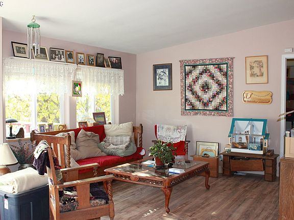 Updated home with acreage and a seasonal creek! Open kitchen, master bedroom, wood stove, new laminate floors, newer roof and vinyl windows, mud room, double car garage, private well, 30x35 Quonset shop with doors, fenced/x-fenced, insulated greenhouse, electric gate, 2 raised garden beds with mature orchard and more! Great opportunities for gardeners and to have animals!