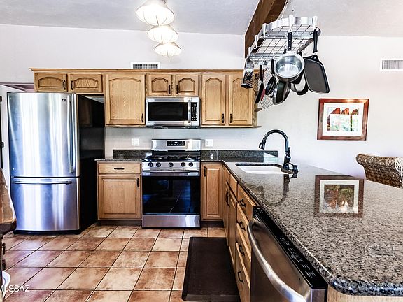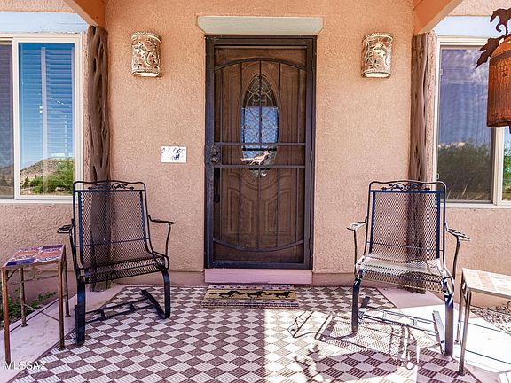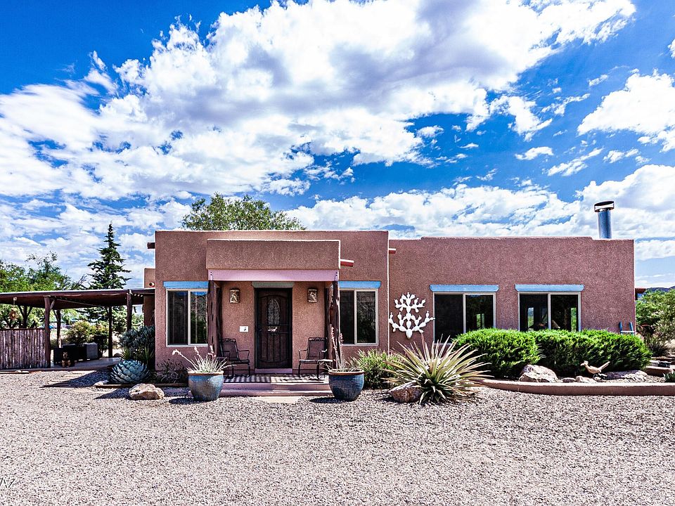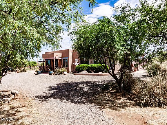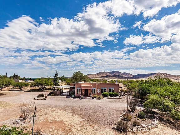 Welcome to the Flying Bisquit Ranch! Turn key 2Bd/Ba Southwestern home with open floor plan. bee hive fireplace. flanked on the east and west sides with wide, patios to enjoy the best of outdoor living year-around. Completely ready for your horses, with covered stalls for 2-3 horses with large turnouts, 2 very large corrals, one w/loafing shed,, round pen,, and open arena area to practice your skills. Nicely appointed tack room w/doggie door to a dog run. Hay barn w/storage for tractor & supplies. Three other outbuildings/carports for storage, and workshops. One shared well and another private well. Completely fenced with field and no-climb fencing to protect your dogs & horses. See list of features for more details. A golf cart,, riding mover & some horsey stuff will convey.