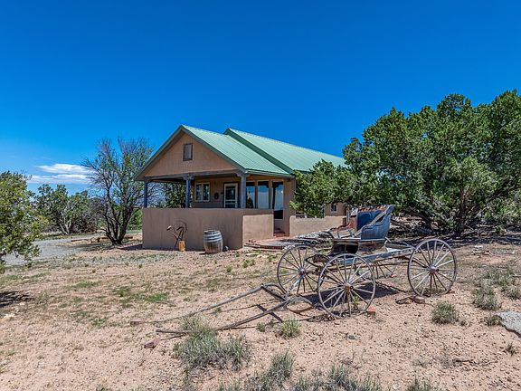 Escape to serenity with this truly unique 1200 sq. ft single-family home perched atop a peaceful plateau just off Hwy 14. Situated on 2.5 acres with gated access, this property offers privacy, security, and panoramic mountain views in every direction—perfect for soaking in spectacular sunsets and the quiet stillness of nature. Crafted with rustic charm in mind, the home features brick floors, and a traditional kiva fireplace that brings warmth and Southwestern character to the living space. With 2 bedrooms and 1 and 1.2 baths, it’s the ideal size for a peaceful retreat or full-time living. Enjoy the expansive outdoor space, ideal for horses, gardens, or simply enjoying the wide-open sky. The 2-car garage offers ample storage, and the location provides convenient access to Santa Fe while feeling worlds away from the hustle and bustle. If you’re seeking a western lifestyle surrounded by natural beauty and timeless charm, this is the one.