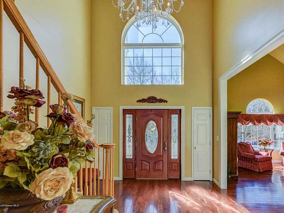 Beautiful colonial Oak Model in Woodhaven development, 4 large bedrooms, 2.5 baths, 2 zone heat and air and two car garage. Full finished basement with bar, sitting area and entertainment room. 2 story entry foyer with hard wood floors in living and dining rooms. Open floor plan on first floor leads to eat-in kitchen, large family room, dining room and living room. Granite counter tops, recessed lights, gas fire place and molding throughout. Master bedroom with walk-in closet. Master bath with tub and separate shower and double sink. Wooded lot, pavers in driveway and large patio in backyard. The development offers recreation center with swimming pool for a fee (optional). Also free access to playground, tennis court and basket ball court.Close to NY City bus. MUST SEE.