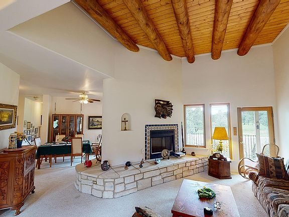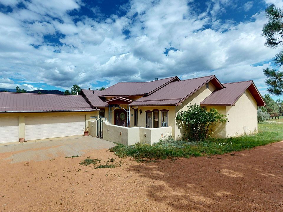 Spacious home in Sunny Pendaries Village East. Take in the beauty of the Sangre de Cristo Mountains in this lovely home with outdoor areas off of almost every room in the home. Covered decks on both sides of the home as well as a front and back courtyard with gardening area. Large kitchen with eat in area and separate formal dining room. Double sided fireplace and stunning Vigas ceiling in the living room. Large master suite with walk in closet, double sinks, jetted tub, separate shower and back deck access. ROOF IS BEING REPLACED AND WILL BE COMPLETED PRIOR TO CLOSING. SELLER IS EXTENDING BUYER A $15,000 ALLOWANCE AT CLOSING FOR PAINT, FLOORING & REFRIGERATOR REPLACEMENT. Home is located on 3 lots at 1.4 acres allowing for plenty of space and privacy. Truly a beautiful home that just needs a little TLC to bring it back to it's former glory.