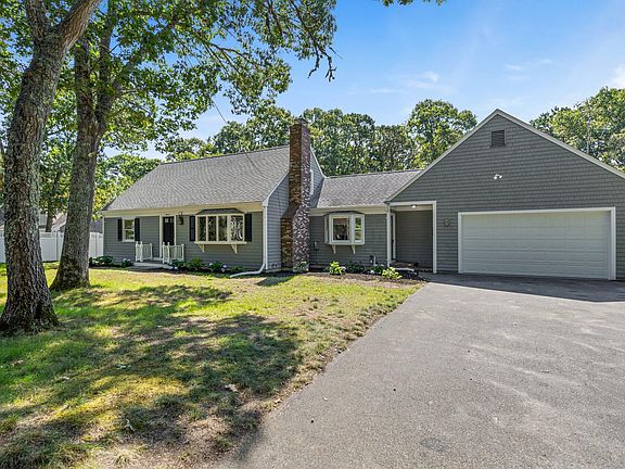 WOW! Come check out this beautiful updated Cape style home featuring 5 beds 1 3/4 baths and over 2400 square feet of living area. The sunny living room boasts beautiful hardwood floors and is complete with fireplace, built-ins, and fresh paint throughout. Just beyond the living room is your dining room which french doors leading out an extra large deck looking out over the large backyard, perfect for entertaining! A beautifully kitchen featuring a skylight filling the room with beautiful natural light, granite countertops, and stainless steel appliances. Rounding out the first floor are 2 bedrooms boasting hardwood floors, built-ins, and a lovely 3/4 bath. Upstairs are two more large bedrooms and second primary bedroom all with new wall to wall carpet, more built-ins, and another lovely full bath. The basement offers two additional finished rooms, and storage space. Don't miss the generously sized two car garage. Nothing to do but unpack for holidays on Cape Cod with guests!