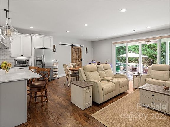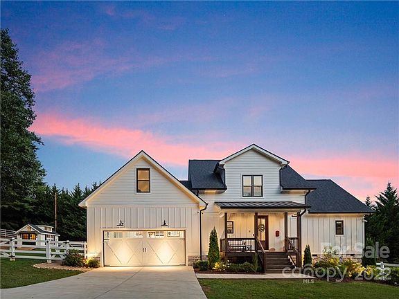 Well built and beautiful! This contemporary farmhouse is the perfect sanctuary to escape the daily bustle! Once inside the world just melts away. The open concept floor plan, shiplap walls and a warm white color palate invite you to come in and relax in front of the fireplace at the end of the day or entertain family and friends on your private deck with hot tub! Well appointed primary bedroom and en-suite are located on the main level and two additional bedrooms, bath, family room and bonus room located on the upper level. Spend weekends in the matching custom farmhouse shed or gardening to your heart’s content! Professional landscaping, security system with cameras, tankless water heater, under house storage, water filtration system and amazing epoxy garage floor add value, peace of mind and security. The large yard with white split-rail fence is picture perfect! Quick and easy access to I-26, Asheville/Hendersonville, shopping, restaurants, and hiking make this the perfect location!