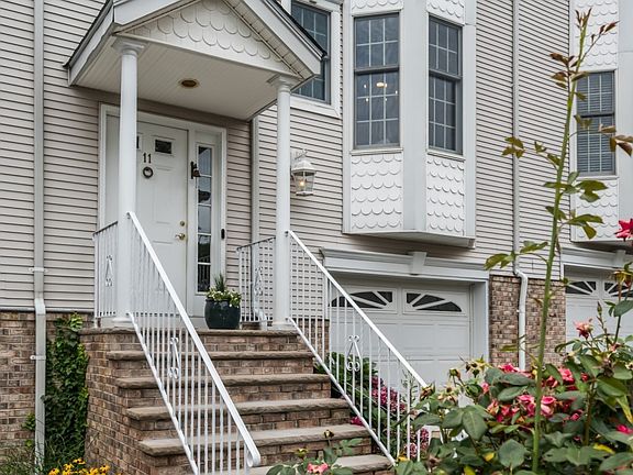 Spacious and stunning townhome in desirable River Dell Commons! This light and bright home offers a beautifully updated eat-in kitchen with a bay window, a banquet sized dining room and a terrific family room with a gas fireplace and sliding glass doors leading to a private terrace. An updated powder room completes the main level. Upstairs you will find 3 bedrooms, including a master suite with two sets of double closets and a master bath with a jetted tub and separate shower. The laundry is perfectly placed in the hallway! The beautifully finished, walk-out lower level family room boasts a soaring ceiling and built-in cabinetry - and then the true surprise of a hidden room - reminiscent of a legendary speakeasy. Another sliding glass door leads from this level to the patio to grill or play! Inside access to the oversized garage, 3 zone heat and 2 zone central air, central vac, tons of storage and seasonal views of the New York skyline. A commuter's dream location just steps away from NYC train and bus, schools and shopping.