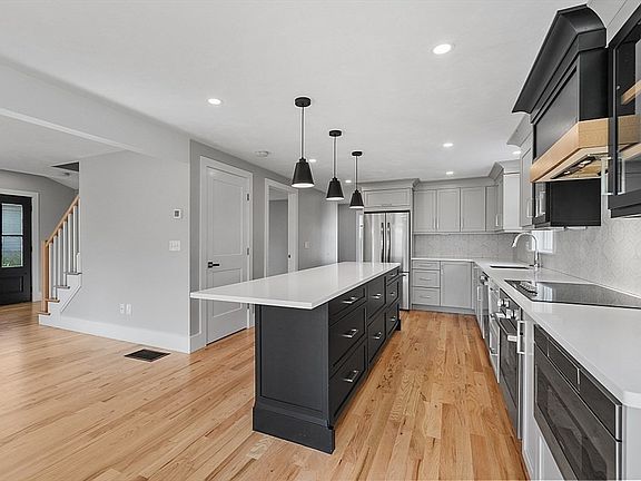 - Features: Flooring - Hardwood, Countertops - Stone/Granite/Solid, Kitchen Island, Cabinets - Upgraded, Recessed Lighting, Stainless Steel Appliances, Lighting - Pendant, Crown Molding