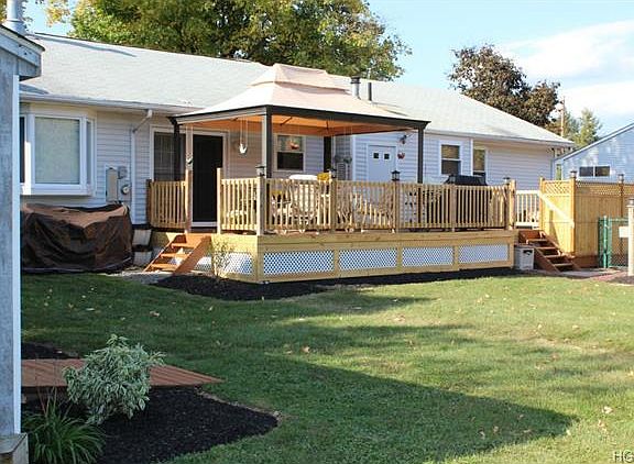 Custom ranch home inside and out!! Vaulted ceilings with trapezoid windows in the large living room with wood stove. The gourmet kitchen is designed for the chef to prepare a meal that can be served right at the counter or the formal dining room. The master suite has its own bath and plenty of closet space. There are two additional bedrooms and another full bath re modeled in January 2014, to round out the interior living space. Leaving the dining room you enter the fenced rear yard that has a storage shed, beautiful 20' X 40' in ground pool with privacy fencing. hot tub and 2 tiered deck 12' X 14' Furtunoff Gazebo. Wired for generator which is included. Turn key house waiting for you to move in. Call for your showing today.