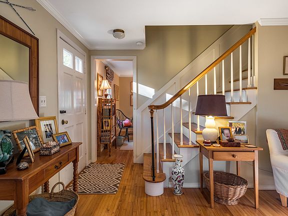 Just a short stroll to Essex Village, this charming gambrel home rests on a quiet cul de sac in a neighborhood of lovely homes. Known as the "Bee Hive", it has been renovated using premium materials and craftsmanship, and tastefully decorated in soft serene hues. On entering the home, the large living room welcomes you with a wood burning fireplace, moldings and natural light flooding the room through windows and French doors on three sides. It is a room made for relaxation and comfort, yet it is elegantly appointed for all occasions. Steps away are the dining area and well accessorized kitchen, which is highlighted by honed granite and marble countertops, a porcelain farm sink and stainless appliances. A mud room with multiple built ins and travertine floor and first floor laundry area are ideal for daily living. For quiet reflection, a den with full bath which could serve as an additional bedroom completes the main level. A wainscoted staircase leads to the master and the guest rooms. Hardwood floors, a recently renovated full bath and an additional half bath provide a flexible living space. During the warmer months the large deck is ideal for entertainment, and the yard is punctuated by native stone walls and gardens. The village of Essex is steeped in maritime history and is home to marinas, yacht clubs, historic inns, restaurants, shops and museums.