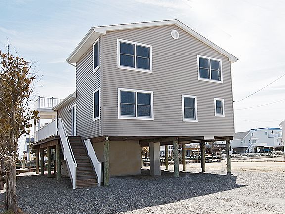 Summertime fun awaits you in this two story contemporary elevated home with fantastic open views of Tuckerton Creek and Atlantic City. Located just off the creek with 50 feet of lagoon front with vinyl bulkhead and dock. Plenty of room for entertaining or relaxing on the two large decks, where you can enjoy the breezes, relax and read a good book, or spend time with the whole family! Added Bonus: your fish cleaning station is ready when you bring home the catch of the day! The house has a wide open floor plan, and an upgraded kitchen with granite counters, and gas fireplace in the living room. Brand new flooring throughout, and freshly painted interior. The master suite is on the first level, with walk in closet and a full bathroom. Upstairs there are two more bedrooms, plus a huge loft area that could be a family or game room. Step out onto the deck, to take advantage of the great views and balmy breezes. After a fun day, walk to dinner! Plus, just a short drive to LBI fun!