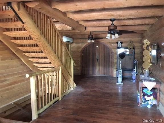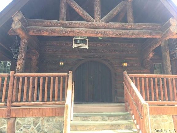 Truly unique Canadian log home overlooks the Delaware River Valley. Great room features a custom stone fireplace with an open kitchen and formal dining room. Master bedroom with bath and 3 additional bedrooms and 4 extra bathrooms. Large deck for entertaining. You have to see the private pool house featuring a 22 X 32 heated swimming pool and jacuzzi. One of the greatest recreation areas we have ever seen. Your family and friends will be amazed.