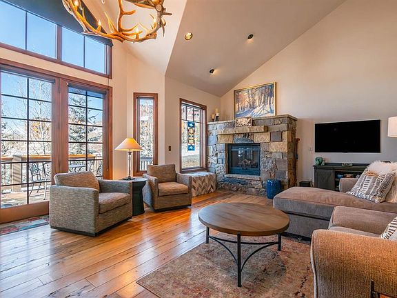 Welcome to 11 Castle Road in Mt. Crested Butte. The residence features three spacious en suite bedrooms plus a half bath, allowing everyone comfort and privacy. The main living level has vaulted ceilings and an open floor plan that flows nicely from the kitchen into the living room. The kitchen is complete with granite countertops, custom cabinetry, stainless steel appliances, a six-burner gas range, and a convenient planning desk—perfect for entertaining or everyday living. Adjacent to the kitchen, the cozy living room centers around a gas fireplace and opens onto a private deck that has recently been enlarged, an ideal spot to unwind while taking in breathtaking sunset views over the surrounding peaks. The private primary suite is a true retreat, located on the top floor, featuring a double-sided gas fireplace and a luxurious spa-style bath with steam shower, jacuzzi tub, and dual vanities. On the lower level of this home you will find each of the guest bedrooms complete with a charming balcony, providing comfort and privacy for family and visitors alike. Additional highlights include a pristine, heated two-car garage with an epoxy-sealed floor and extensive built-in storage cabinetry. Every detail of this home reflects pride of ownership, making it a turnkey opportunity to enjoy the best of mountain living in one of Crested Butte’s most desirable locations.
