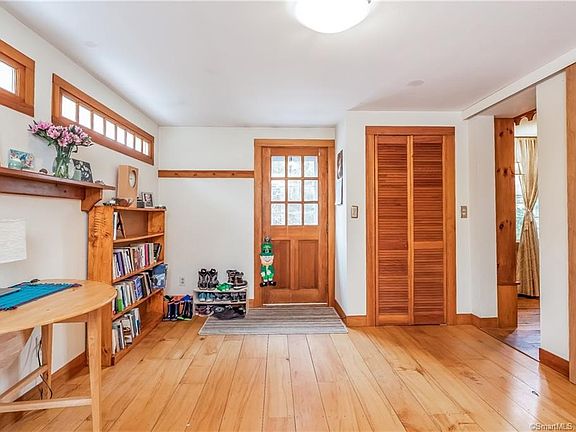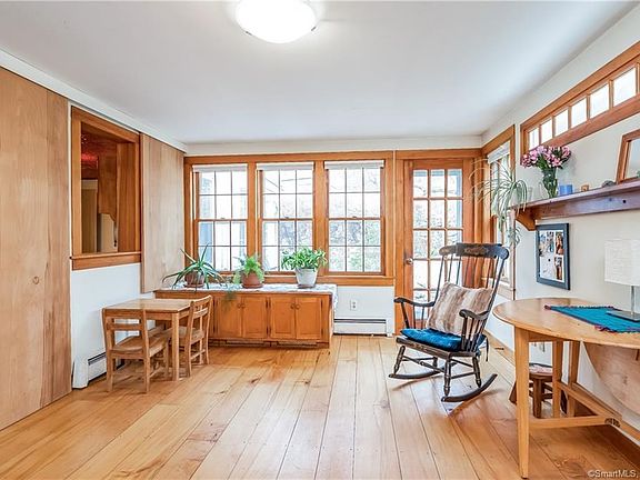Are you looking for an antique home to call your own, just steps to the Hop River rail trail and a short distance to Andover Lake, where you can enjoy kayaking, fishing and swimming?! Amazing to think you can own a charming 3 bedroom, 2 bath home in the historical district of Andover at an affordable price! The entryway opens into a family room, followed by dining room and kitchen. Wait until you see the original American Chestnut wood planking throughout the first floor and tin ceiling in the kitchen. The living room is a cozy space with a nook, built-in bookcases and a wood burning stove. The master bedroom has an office/dressing room area to complete the first floor. The second floor has two additional bedrooms, each with skylights, and a half bath, as well as built-in bookcases. There are some nice modern amenities in this antique home such as a Buderus furnace, and the roof is only 8 years old. There's a little bit of elbow grease, some paint and window replacement needed; not all that much work to make it your own. Restore, refurbish and renew. You have finally found a unique and charming home you can afford. Due to the very reasonable price point, property is being sold 'as-is'.