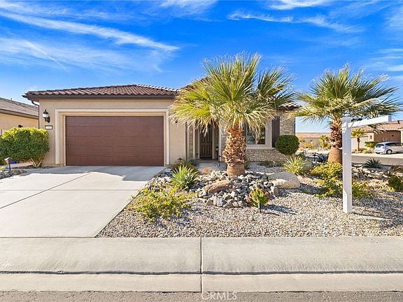 Welcome to this highly sought-after Sanctuary Model, the most popular floor plan in Del Webb Rancho Mirage, ideally positioned on a premium corner lot with exceptional privacy and curb appeal with owned solar. Designed for effortless desert living, this home offers a perfect blend of luxury, comfort, and indoor-outdoor flow. The beautifully landscaped backyard showcases spectacular mountain views with direct sightlines to the community walking path—an ideal setting for morning coffee, sunset entertaining, or peaceful evening relaxation. Expansive multi-slide patio glass doors flood the interior with natural light and create a seamless transition between indoor and outdoor living spaces. Inside, the home features an extensively upgraded interior, including black honed granite countertops, porcelain tile flooring, upgraded cabinetry, motorized window shades, designer lighting and faucets, and premium appliances, delivering both elegance and functionality. The thoughtfully designed layout offers two and one-half bathrooms, with each bedroom featuring a private en suite bath, plus an additional half bath for everyday convenience and entertaining. Located in the guard-gated Del Webb Rancho Mirage, residents enjoy resort-style amenities including a state-of-the-art clubhouse, fitness center, pools and spas, pickleball and tennis courts, walking trails, and a vibrant social calendar—all within a secure, 55+ active adult community. With easy access to golf, dining, shopping, and all that Rancho Mirage has to offer, this home delivers the ultimate desert lifestyle. This is a rare opportunity to own one of Del Webb’s most desirable models in a premier location—a must-see home that truly has it all.