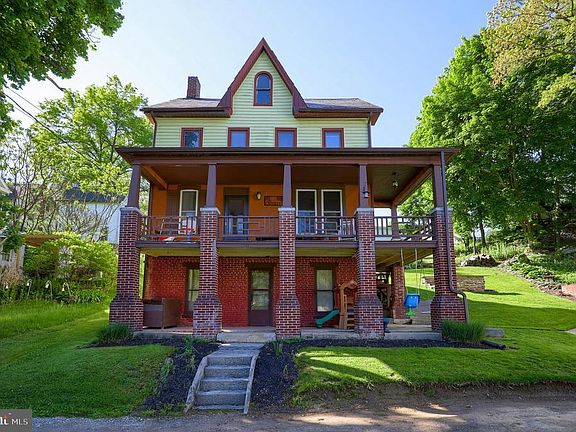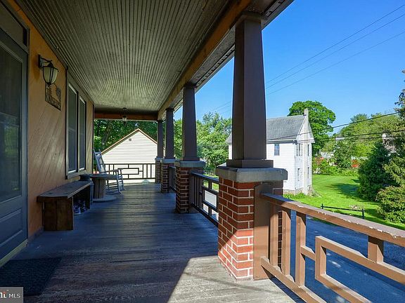 You'll appreciate the warmth of years of living in this 3 Sty, 3BR, 1 Bath Farmhouse with huge columns set against a rocky craig backdrop and overlooking a small valley with stream and other turn of the century homes. Reminiscent of the small Hamlets just off the main road in many rural parts of Turn of Century America. Modern Country Kitchen with ceramic tile counter tops, partially open to a Formal Dining Room and hallway to Living Room with access to an old fashioned lazy day front porch from this level. Atrium window looks out over side yard and trees and there are easy to care for hardwood floors in Living Room. There is an entry door to the updated bath off this room as well as the stairway to the 2 nd Floor. There are 3 Bedrooms on the 2 nd Floor with one; a large master bedroom (21x12) and 2 small bedrooms and all bedrooms having what appears to be vinyl laminate flooring. Bedroom 3 has walk-up attic accessfor lots of Storage.. Walkout basement with plenty of storage leading to a front Porch. This level has several rooms with a laundry and most rooms are built out for someone to attach drywall and finish for extra living area (may need boro permission). The wood, coal or both stove is located here. To the right of the home is an oversized 1 car detached garage for parking with a 22x16 Workshop (double doors) above for the creative areas of your family's life and others closest to you. Spend countless evenings seated around the large firepit and relaxing in the huge Patio in side yard. Generally updated about 2007 in most areas of home needing painting in a few areas with some older windows and 4 replacement windows. Refrigerator was purchased in 2019.