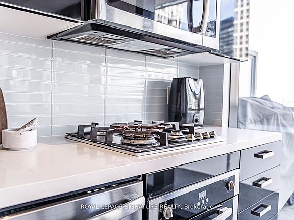 Contemporary 1 Bedroom Suite In The Heart Of Downtown! Open Concept Layout With Exposed Concrete Ceilings, Modern Kitchen, Quartz Countertop, Stainless Steel Appliances, Floor To Ceiling Windows, Sliding Glass Doors Walkout To A Spacious Balcony (The Entire Length Of The Unit!) W/ A Gas Bbq Hookup & Bqq Incl! Hotel Style Amenities: Rooftop Pool, Gym, Concierge,Party Room Etc. 1 Locker Included. Close To Ttc, King Street Restaurants, & Shopping.