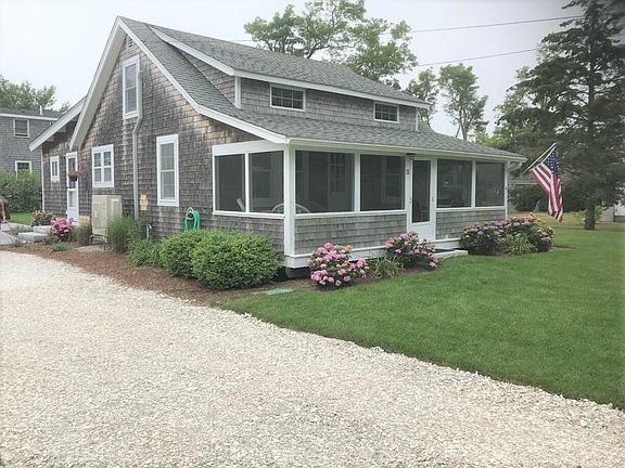 Come prepared to relax in this impeccable bungalow with expansive front porch overlooking the large, level yard offering all kinds of possibilities; croquet, gardening, ball games, there's even room for a pool! Charming amenities include renovated open kitchen with apron sink and butcher block counters, exposed ceiling beams, updated windows, wide plank floors and generous living and dining space. Separate vaulted ceiling bunkhouse with reclaimed wood floors and renovated full bath provides room to expand. Freshly painted through out, additional recent improvements to the main house include 4 bedroom septic, 4 zone split AC/heating system, tankless hot water system, large patio, gutters, drywell, and increased insulation. The cottage and yard were renovated to include a full bath and split AC/heating system, new gardens, walkways, sod lawn, fire-pit, irrigation and fencing. Tastefully appointed, if desired, the sellers will consider selling turn key with all furniture and furnishings in place. Sq Ft includes cottage.Licensed as 10 occupancy rental, history available upon request. Proximity to Nantucket Sound Beaches, upscale restaurants, mini golf and ice cream shops!