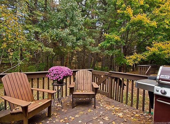 LIGHT AND BRIGHT TOWNHOUSE TUCKED AWAY IN A CHARMING GRANBY NEIGHBORHOOD! This cozy home features 2 bedrooms, 3.1 baths with NEW vanities/sinks/countertops AND gleaming hardwood floors! Master your culinary skills in your eat in kitchen with spacious dining area, tile backsplash AND newer stainless steel appliances! Grab some popcorn and watch the latest action flick in your living room with fireplace! Master suite with full bath AND ample closet space! Partially finished lower has a FULL bath and gives you the option of a 3rd bedroom, office area or anything else your heart desires! Step out onto your private deck with a glass of lemonade and enjoy the warmer weather OR grab some blankets and gaze up at the stars! Conveniently located near local highways, Bradley International Airport, shopping, restaurants and McLean Game Refuge where you'll enjoy some of the best hiking trails CT has to offer!