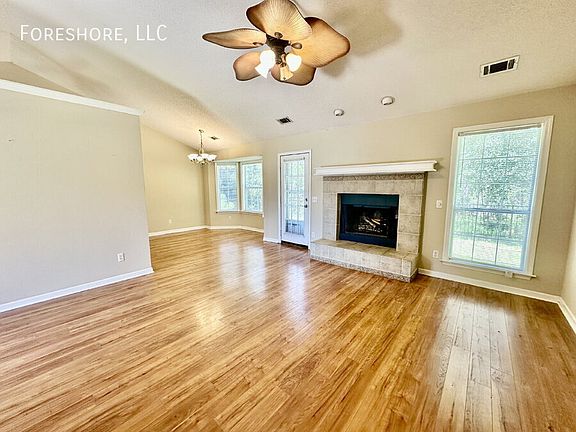 Located in Rivers End this three-bedroom, two-bathroom home has crown molding, a tiled, wood-burning fireplace, and a large fenced backyard. Wood floors run throughout the living area, tile in the kitchen and bathrooms, and carpet in the bedrooms. The living room has high vaulted ceilings, and the master bedroom is large, with a walk-in closet, an en-suite bathroom, and plenty of windows. The kitchen is bright, with white appliances and cabinets. Landscaping and pest control are the tenants responsibility. One small, mature and housebroken dog under 30 lbs. may be considered with a $500 non-refundable pet fee. No cats, puppies(under 3yrs old), aggressive breeds, or fish tanks. All ForeShore residents are enrolled in the Resident Benefits Package (RBP) for $50/month which includes, liability insurance, your own online resident portal for service requests, online payment options, credit building to help boost the resident's credit score with timely rent payments, up to $1M Identity Theft Protection, HVAC air filter delivery (for applicable properties), our best-in-class resident rewards program, and much more! More details upon application.Engineered Hardwood
