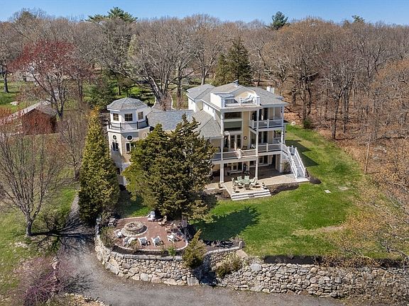 Welcome to your oasis directly on the Assonet River with your own deep-water dock, 5 decks, 2 large patios, barn, 3 car garage (plus dedicated golf cart garage) this lovingly maintained home offers luxury living inside and out! A grand foyer w/ 20 ft cathedral ceilings welcome you with an open living concept & stone tile which flows through multiple levels, sun-filled home. The kitchen is a chef’s dream SS appliances, double wall ovens, drawer microwave & plenty of counterspace opening to the main living area w/custom built in shelving. The large billiard room, “lighthouse” & 2 more guest rooms complete the main level. The primary bedroom on its own level offers sitting area, fireplace, ensuite bathroom w/ jetted tub, 2 walk-in closets, spiral staircase to private roof deck w hot tub & endless views. LL offers more living space, large laundry room, additional bedroom & views of the palatial grounds. Built in 2006 w/ expansive addition in 2016. This unique property is a must see!