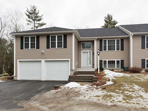 Desirable Little Mill Woods ~ Gorgeous End Unit with 2 car Garage. One of the last built, this home was framed in 2012 and finished in 2013. Perfectly sited with only 3 Units on this Cul de Sac Road Offering Supreme Privacy and Boasting Wooded Views abutting 13 Acres of Conservation Land, Appointing it as one of the most Appealing settings at Little Mill Woods. Neutral Palette Interior is Light, Bright and Airy. Features include: Central Air, Gleaming Hardwood Floors, Recessed Lighting, Blinds, Eat In Kitchen boasts Stainless Appliances, Under Cabinet Lighting & Gas Range. Rooms include: Sunlit Den/Office w/ Ceiling Fan, Open Concept Dining Room, Fireplaced Living Room, En Suite Master with Vaulted Ceiling, Ceiling Fan, Walk In Shower and Walk In Closet. Spacious Lower Level with Generous Windows & Sliders offering Bright Natural Light is ready to be finished should you chose or keep as storage. Age restricted to 55+. Pet friendly per Association Rules. Association Amenities include the Community Center, Bocce and Horseshoes. Fantastic location near Hampstead Line and located approx. 3 Miles to Shopping and Town Center.