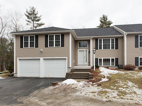 Desirable Little Mill Woods ~ Gorgeous End Unit with 2 car Garage. One of the last built, this home was framed in 2012 and finished in 2013. Perfectly sited with only 3 Units on this Cul de Sac Road Offering Supreme Privacy and Boasting Wooded Views abutting 13 Acres of Conservation Land, pointing it as one of the most Appealing settings at Little Mill Woods. Neutral Palette Interior is Light, Bright and Airy. Features include: Central Air, Gleaming Hardwood Floors, Recessed Lighting, Blinds, Eat In Kitchen boasts Stainless Appliances, Under Cabinet Lighting & Gas Range. Rooms include: Sunlit Den/Office w/ Ceiling Fan, Open Concept Dining Room, Fireplaced Living Room, En Suite Master with Vaulted Ceiling, Ceiling Fan, Walk In Shower and Walk In Closet. Spacious Lower Level with Generous Windows & Sliders offering Bright Natural Light is ready to be finished should you chose or keep as storage. Age restricted to 55+. Pet friendly per Association Rules. Association Amenities include the Community Center, Bocce and Horseshoes. Fantastic location near Hampstead Line and located approx. 3 Miles to Shopping and Town Center.