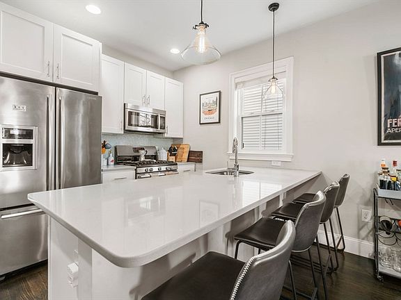 Live in the heart of Union Square at 11 Church Street #1, a stunning 2+/3 bedroom, 2 bath condo that blends modern design with urban convenience. Featuring an open-concept layout, high ceilings, hardwood floors, and abundant natural light, this home offers a seamless flow between living, dining, and kitchen spaces. The gourmet kitchen boasts quartz countertops, custom cabinetry, stainless steel appliances, and a breakfast bar. The primary suite includes an en-suite bath, ample closet space, and oversized windows, 2nd bedroom is large with great closet space, the bonus room offers flexibility as an office, guest room, or nursery. Enjoy central air, in-unit laundry, extra storage, off-street parking, and a common back porch in this pet-friendly, self-managed association. Just a 12-minute walk to the Union Square Green Line, with direct bus access to Harvard, MIT, and multiple T lines, plus easy access to parks, farmers markets, and top restaurants. Walk Score: 98