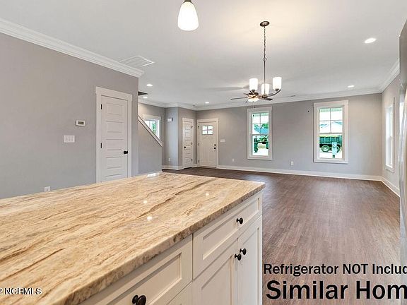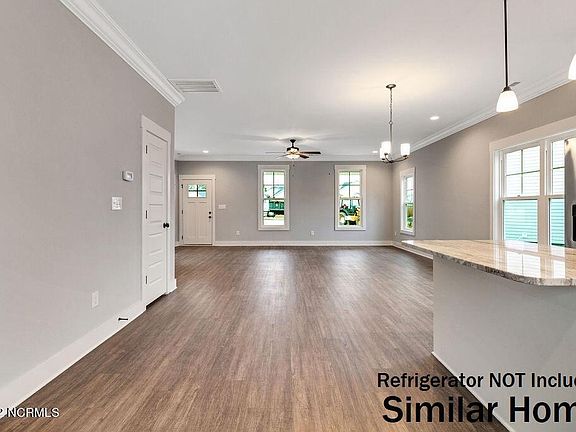The Avon plan by Holbrook Homes, located in Jones County's newest neighborhood, Patrick Farms, is situated on a large lot and is just minutes to area shopping. The main floor features an open concept with a spacious living room and kitchen, complete with custom cabinetry, recessed lighting, LVP flooring and granite countertops. Upstairs you'll find 3 large bedrooms, including a owner suite that will leave you feeling like royalty with it's stunning trey ceiling, walk-in shower, and granite countertops. This floor plan offers it all and provides the opportunity to choose some selections! Don't wait, call today! Disclaimer: Square footage and dimensions are approximate, subject to change without prior notice or obligation and may vary in actual construction. In addition, photos may include upgrades that do not come standard in this home.