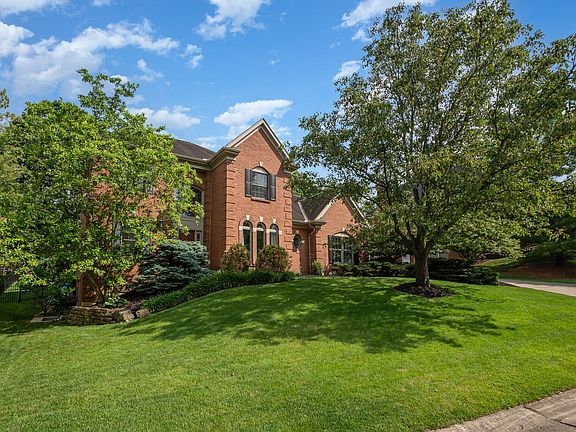 Spacious and highly upgraded, custom full brick home by builder Tim Burks. Home offers an open concept with Great room, Kitchen & Breakfast room all within an eye's viewing, which lends itself to the perfect entertaining space. The home offers many wonderful features such as large rooms, tall ceilings on all 3 levels, Rookwood tile surrounded gas fireplace with mantle, refinished hardwood floors, new tile flooring, wainscoting wall panels, solid surface counters, ss appliances, auto lighted closets, multiple upgraded walk-in showers, dry and wet bars, crown molding areas, trey & vaulted ceilings, upgraded finished lower level with walk-out, large storage & utility rooms, and much, much more! Home has an oversized 2 car garage and an entertaining oasis rear yard, with dyed & stamped concrete patio, surrounded with luscious landscaping, and full rear yard aluminum fencing for pets. The beautiful green landscaped yard setting surrounds the home and has landscape lighting as well as an irrigation system. This home has it all, and has been well cared for by sellers and shows beautifully. Offering a 1 year home warranty.