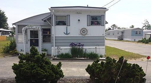 Great area for summer or year round use. Fantastic price of $23,900. Large living room with beamed cathedral ceiling, dine in kitchen with walls of counter space. Master bedroom with 1/2 bath, laundry located in main bath. Multiple closets. Large sun porch. Short drive to Onset Beach, Shopping and Cape Cod Canal. Small pet allowed. Park approval Required. 55+ community.