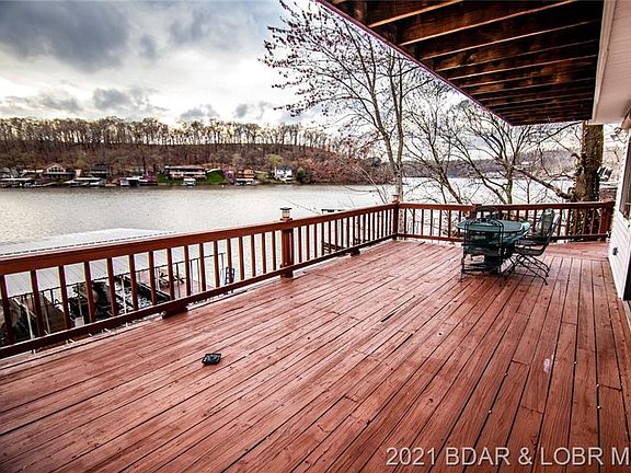 Great Lake front home with lots of decking, view, furnished, attic fan, storage, 2 well dock, hoists and ready to enjoy. Located on the 1 MM of the Big Niangua in Anthony Cove. 3 Bedroom, 2.5 baths. Master bath with walk in shower. Bedrooms are on walk in level. Lower level has living room, kitchen, dining area, laundry, half bath. Walk out to large deck with great view of cove and main channel. Minimal stairs to dock. Wonderful natural rock seawall. Many positives. You have 2 additional parking spaces on road above home for additional parking. Dock has had electrical inspection and will be brought up to code by closing. This home is turn key and ready to go by Memorial Day or before!