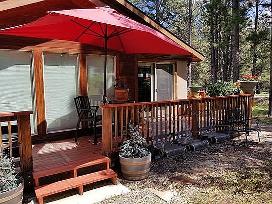 Approximately 1402 sf with 2 lots in Country Clay Villas subdivision. 2 Bedroom and 2 bath with as Southwest style to the home and a Kiva fireplace. The home is located across the street from the Angle Fire Golf Course. View of hole #18 and close to home #1 tea box. The home was built in 2013 and has city water and sewer. The home comes with a new dishwasher, Samsung washer and dryer. You are only a 3 minute walk to the Country Club with access to the swimming pool, Pro shop, weight room and a Bar and Grill. Walking distance to tennis courts and playground. The ski lift is and grocery store are about a mile from the home. HOA for Country Club Villas is $500 a year and the Angel fire base membership is approximately $1475. Real estate taxes are $2250. THIS IS THE ONLY stand alone home in the villa with extra lots. A must see home with all the wildlife you could ever want to see.