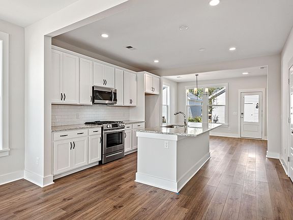 Our popular Rowan plan offers a wonderful welcome with a full front porch. This home has an open concept first floor with family kitchen and dining. LVP throughout first floor and island in the kitchen with 42'' cabinets, stainless steel appliances, and granite countertops. All bedrooms are located upstairs. Master bedroom is located upstairs featuring double vanities in bathroom with tile floors and a walk-in shower with bench. Laundry and bath 2 have tile floors as well. This home is just a short walk to the new amenities center which is now OPEN!