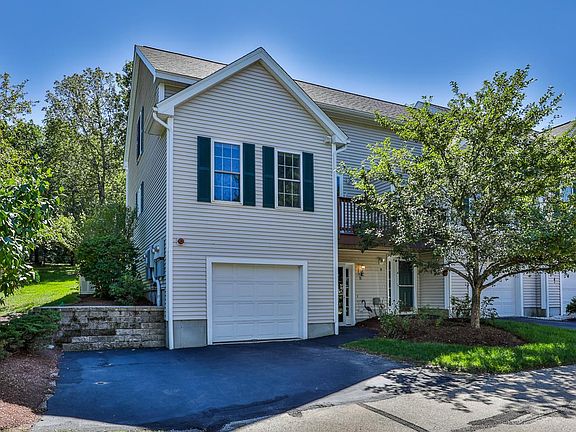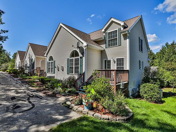 This 2 br, 2 bath, 55+ unit is the last one at the end of the cul-de-sac. Garage leading into the basement mudroom/entry. Hardwood stairs leading up to the main living space. A 3/4 bath on the first floor has a walk in shower and sleek new vanity and fixtures. Kitchen with gas stove, stainless refrigerator, and plenty of storage. Front door provides access to the front porch/deck. Family room with gas fireplace and cathedral ceilings. Second floor master bedroom with walk in closet. Full bath on the second floor with new vanity. An extra large closet/bonus space with vinyl flooring could be used for storage or as flex space.This is a 55+ community. This association is close to the river and provides access to walking trails. Easy access to route 3. Easy to show.