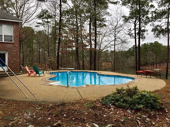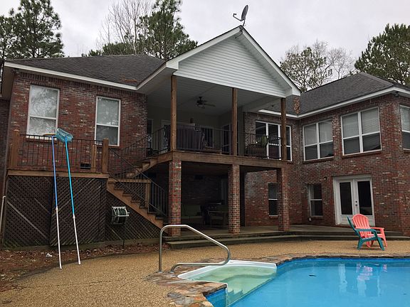 A true showplace! What a wonderful opportunity for ownership in a stunning, waterfront home with all of the bells and whistles! This home offers an array of amenities! Imagine yourself sunbathing next to this beautiful built in swimming pool while overlooking the lake while family and friends enjoy fishing, kayaking and enjoying the fruits of nature! Vacay is at your back door! The interior of the home is lovely and kept neat as a pin. In the kitchen you'll find several upgrades have been made including brick flooring. an updated backsplash, SS appliances and granite countertops. All bedrooms are exceptionally maintained and generously sized. with two guest rooms sharing a jack and jill style bath and the third guest having access to a hall bath. Downstairs is the perfect space for