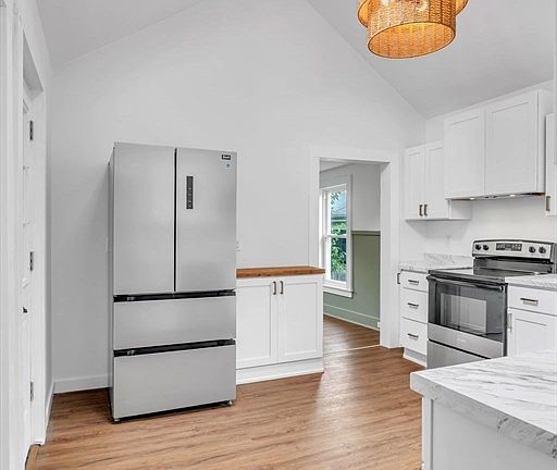 - Features: Skylight, Vaulted Ceiling(s), Flooring - Vinyl, Cabinets - Upgraded, Exterior Access, Open Floorplan, Stainless Steel Appliances, Lighting - Pendant