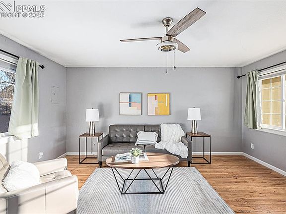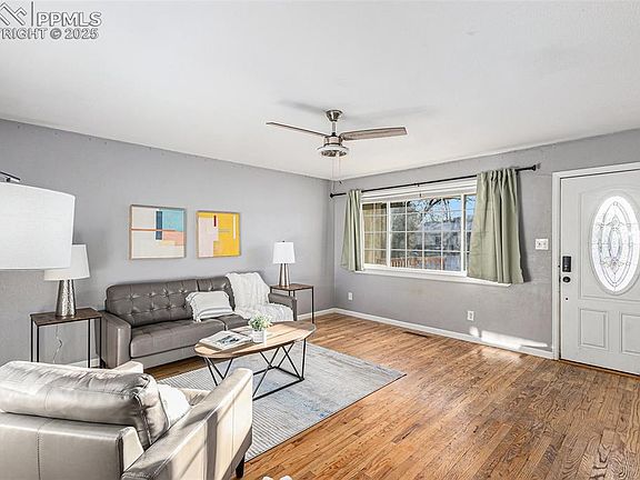 Welcome to the home with the big elm tree! This charming 3-bedroom, 2-bath tri-level home perfectly blends comfort and convenience. This midcentury home is in a prime location and offers Cheyenne Mountain views from your new extended front porch. When entering the mid-century home, you'll find a main-floor living area with the original wood floors and large windows. Upstairs, you are treated to three large bedrooms and a large bathroom with ample space for everyone. On the lower level, enjoy the newer low-maintenance LVP flooring that sprawls across the open floorplan, encompassing a large kitchen with an eat-at counter, a dining area, and an additional living space ideal for entertaining or relaxing. Mature trees surround the home, and the large, fenced backyard is perfect for outdoor gatherings, gardening, or simply relaxing. *All appliances included* *New water heater* *No HOA and low taxes make this an excellent value* Additional features include a 1-car garage and a bonus storage shed, giving you plenty of room for tools, gear, or seasonal items. This home's location is unbeatable! Close to local award winning schools. 5 minutes to Fort Carson, 115, and I-25 for easy commuting, excellent shopping, restaurants, and parks. Outdoor lovers will appreciate the proximity to Cheyenne Mountain State Park, while the World Arena and Colleges are just minutes away.