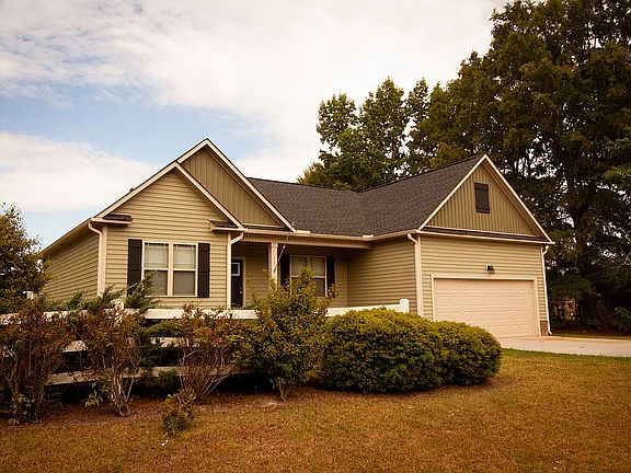 Check out this well maintained home ready for a family to call it “home”! Natural lighting and high vaulted ceilings create a warm and inviting atmosphere in this split floor plan home. Great kitchen features center island, granite counter tops, SS appliances, and cabinets feature soft close doors. Perfect spot to grill out on the deck or take a soak in the master tub! You will love the large walk in master closet! Garage shelving great for storage including private nook perfect for a safe. Across the road from park. Quick access to Highway 70 for an easy commute to Goldsboro or Raleigh.