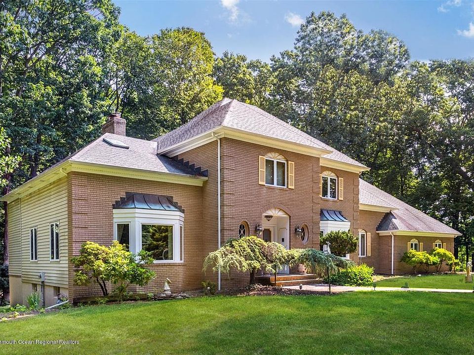 Stately Colonial on 3.34 acre wooded lot. The first floor welcomes you to a 2-story foyer, formal living and dining rooms, family room with wood burning fireplace, library, eat-in-kitchen, 1st floor bedroom with adjacent bath as well as a solarium with spa leading to an expansive deck. The second floor has four large bedrooms including a master suite with a large walk-in closet and well appointed bathroom. This home also boasts a full partially finished basement with bar, attached 3-car garage and many spacious closets. Located in Central Monmouth County between Big Brook and Thompson Parks where residents of this community enjoy convenient access to the Henry Hudson Trail, playgrounds, tennis courts, lake or dog run or Creative Arts Center. Colts Neck is a short drive from New York, Pennsylvania and Delaware. Many wonderful public and private schools are nearby including University Partnerships with nearby Brookdale Community College.