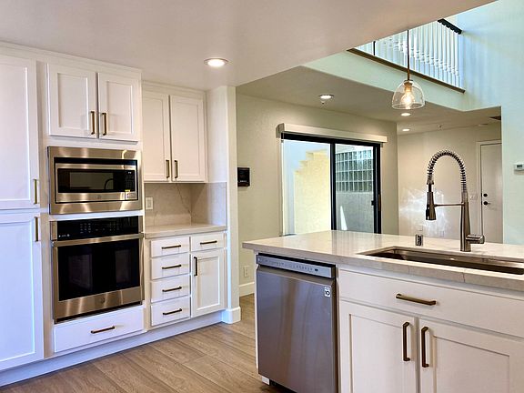 Beautifully remodeled townhome with Bay views! Enjoy this spacious home filled with natural light and modern fixtures. Gated courtyard opens up to double front doors and sliding door leading to the family area, kitchen with stainless steel appliances, eat-in counter and 2-story ceiling with skylight. Living room with access to the balcony over looking greenery and bay views. A fireplace and windows throughout adorn the living and dining areas. Laundry room and half bath completes this first floor. Bedrooms are on the 2nd floor for privacy. Cabinets line up the hallway. Primary bedroom with high ceiling, fireplace, Bay views and walk-in closet. Enjoy the spa-like en suite bathroom with double sink, plenty of storage and counter space. A hallway overlooking the courtyard and family area leads to the junior bedrooms with jack-and-jill bathroom with modern fixtures. Attached 2-car garage. Tenants are responsible for all utilities. Tenant is responsible for all utilities.